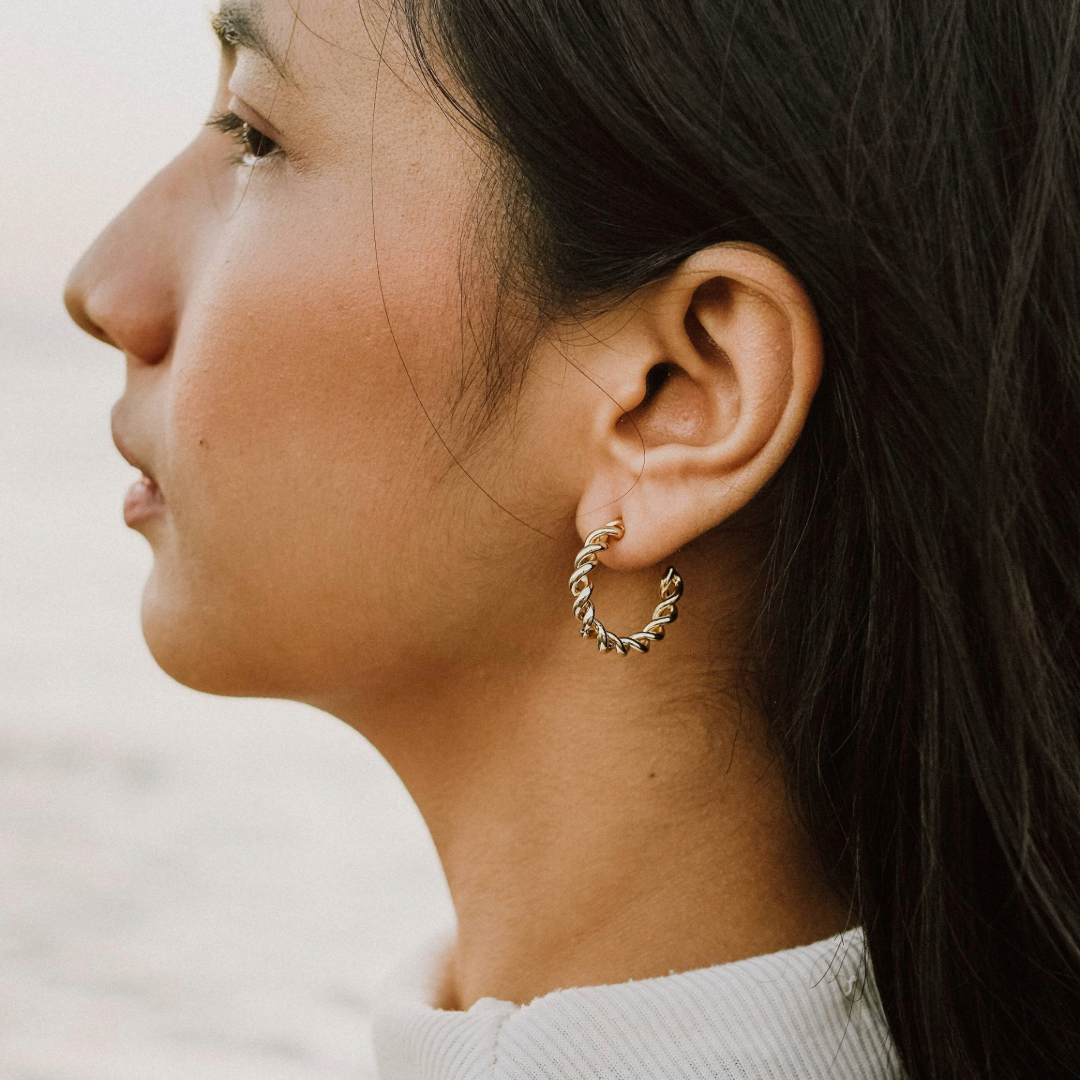 Crafted with meticulous attention to detail, the Torcido Twisted Earrings feature a unique twisted design that adds a touch of texture and dimension to your look. The intertwining hoops create an intriguing visual appeal. Versatile and chic, they effortlessly transition from day to night, adding a hint of sophistication to any outfit.
